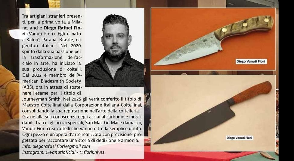 I had the honor of being featured in Lame d’Autore, one of the most respected magazines in Europe dedicated to artistic and traditional bladesmithing. The article highlighted my work as a custom knifemaker, showcasing my technique, style, and international journey.